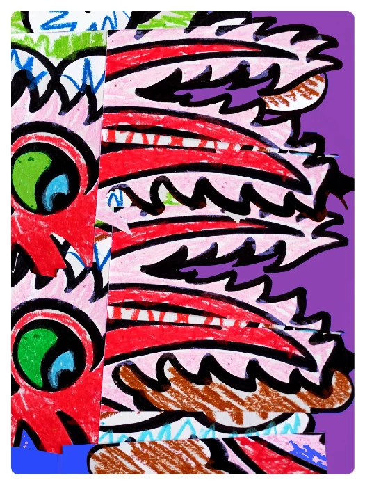 An expressive image defined by vibrant colors, bold lines, and strong contrasts. The layered composition conveys energy, rhythm, and visual impact.
